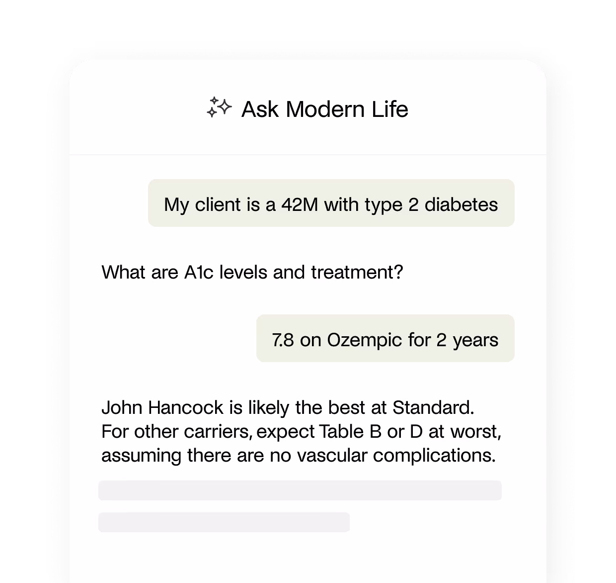 Modern Life's technology platform is second to none. It's by far the easiest software to quote, share quotes with clients across multiple carriers and fill out the application. I “drop’ the app by clicking a few buttons and they do the rest. No long forms of health questionnaire or follow up on exams, so it saves me a lot of time.”